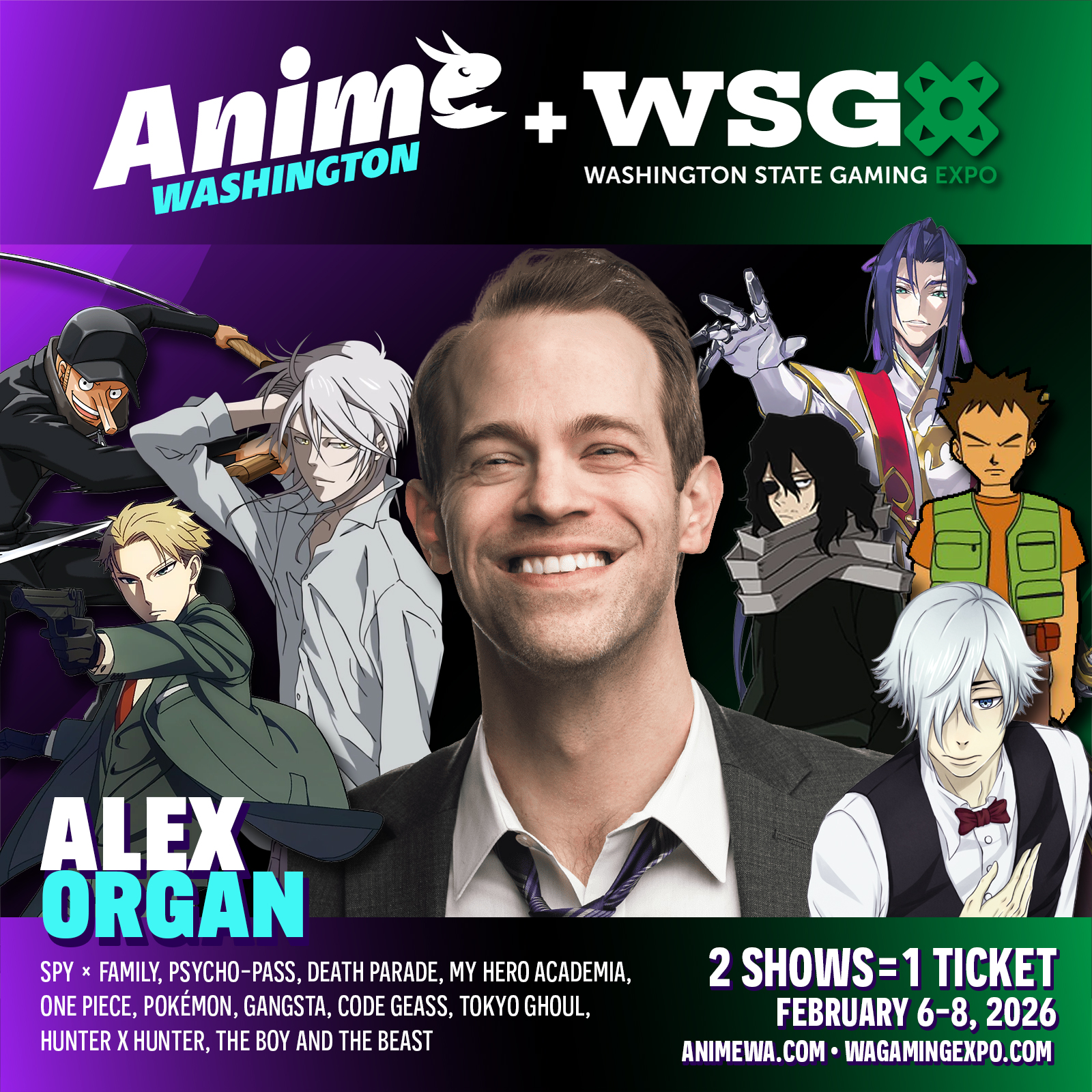 All Guests that are promoted are under contract to appear on the days listed. If the Guest has an unforeseen conflict personally or professionally and can not make the event, Anime Washington would post a notice on the website and social media immediately. No refunds will be given for admission tickets due to a Guest’s cancellation.